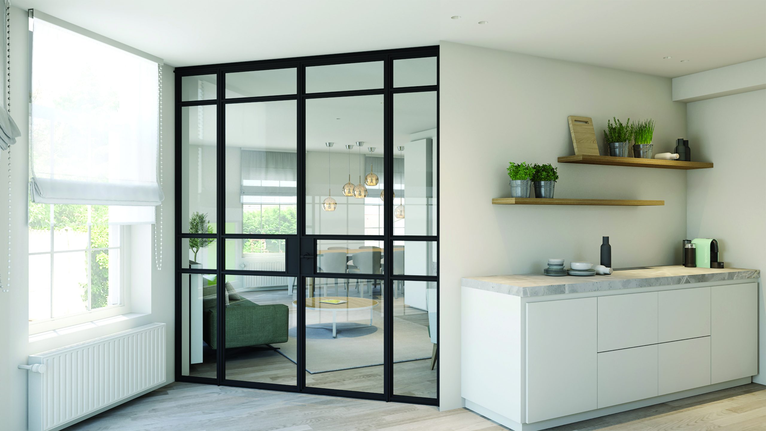 Achieve the iconic steel door aesthetic with expertly crafted transom bars, seamlessly integrated into our aluminium internal glazed doors and screens. Available for single and French door styles, these bars can be arranged horizontally or vertically to create a variety of striking designs, from a refined Georgian grid to the bold, angular lines of 1920s Art Deco.
