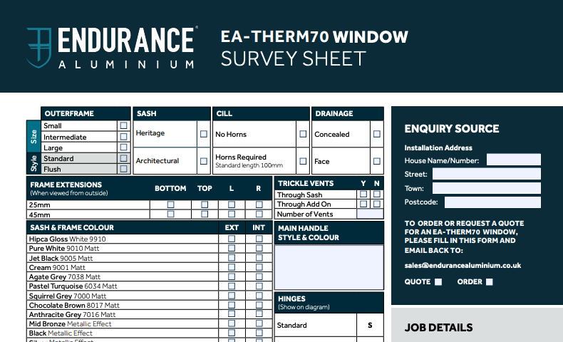 Access all the resources you need to sell Endurance in one place. Browse brochures, specification documents, and installation guides, and download order forms with ease. Our complete collection of marketing materials is designed to support you in selling aluminium windows and doors effectively.