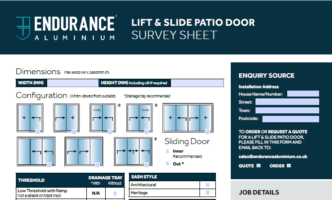 Lift & Slide Patio Door Survey Sheet