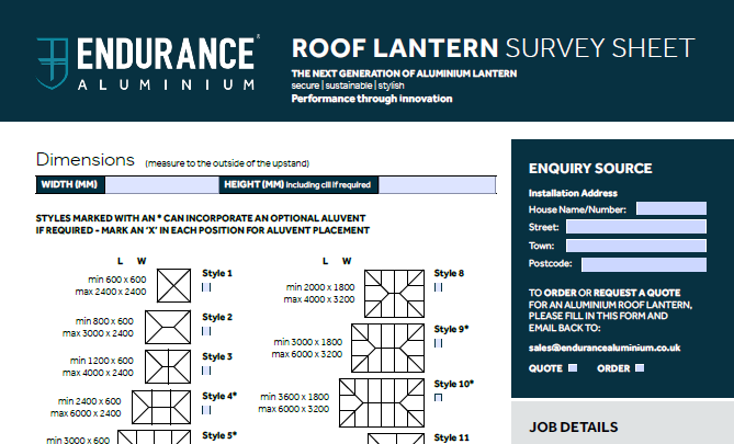 Roof Lantern Survey Sheet